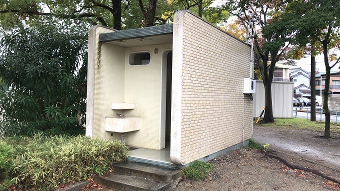 トイレはエリア外で、公園内には計3か所あります。