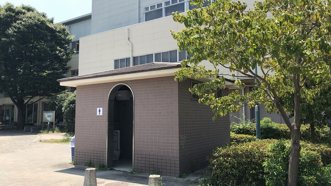 トイレはテニスコートエリアを挟むように公園トイレが南北に2箇所あるので安心です。