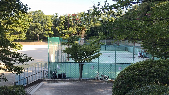 ●公園入口から少し入ったところ 右奥方向がテニスコート