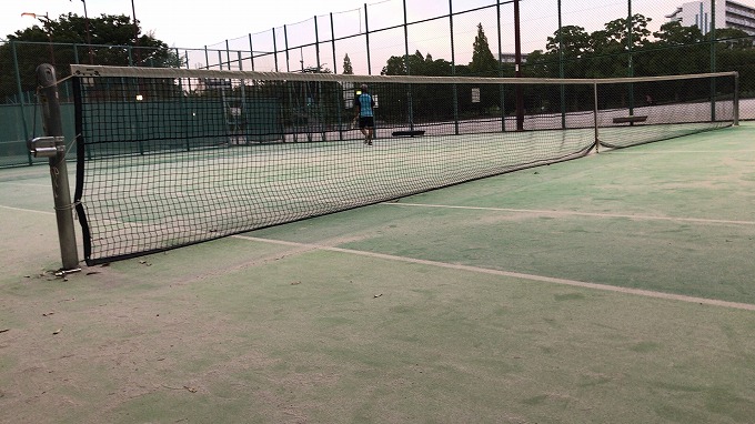 ここの良い点は、コート周りの高さがあり植栽に囲まれているため西日が遮られることです。