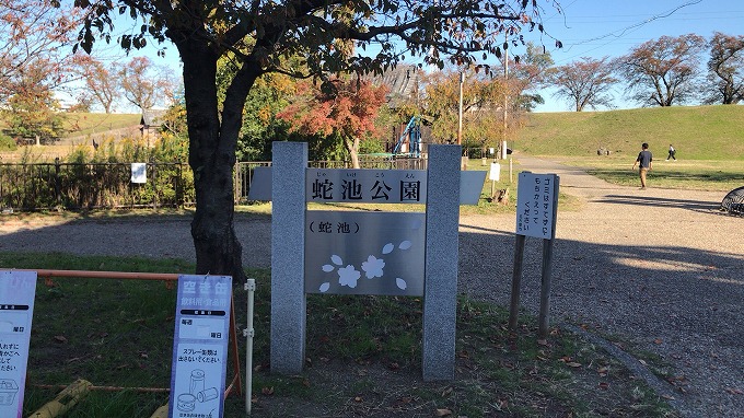 名前のとおり、蛇池という池があるのですが、この池は、かつて、大蛇が棲むという噂を聞きつけた、若かりし頃の織田信長が自ら池に入り探索したという逸話があります(プチ歴史フリークの私も、司馬遼太郎氏の著作で読んだ記憶があります。)。