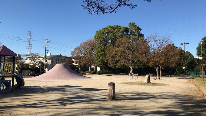 ここは、蛇池(じゃいけ)神社を中心に、2箇所の遊具広場、野球場、テニスコートからなる街区公園です。