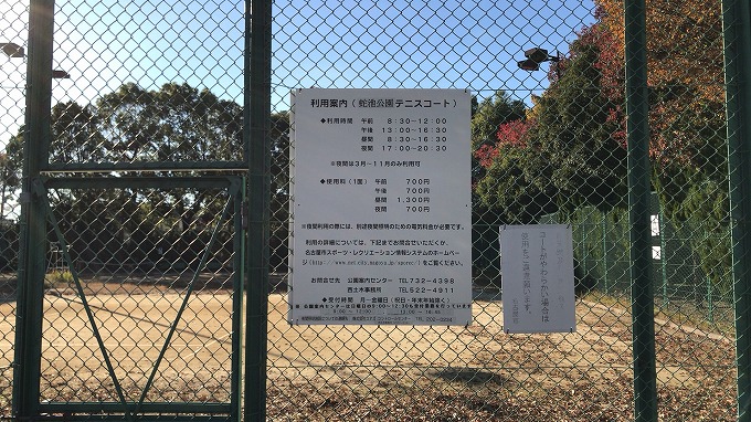 愛知県名古屋市西区、蛇池(じゃいけ)公園テニスコートです。